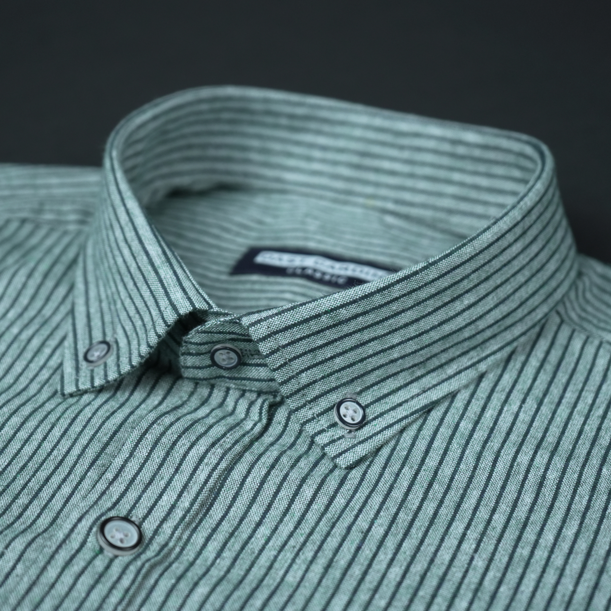 Gulerul întărit și acompaniat de doi nasturi, își va păstra forma, fără a fi nevoie de o călcare riguroasă, cusaturile de 7 pași pe cm, butonierele cusute impecabil și nasturii atent aleși.