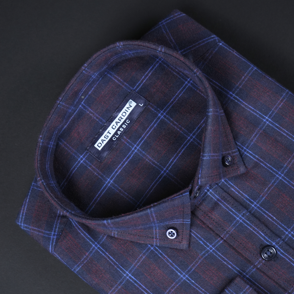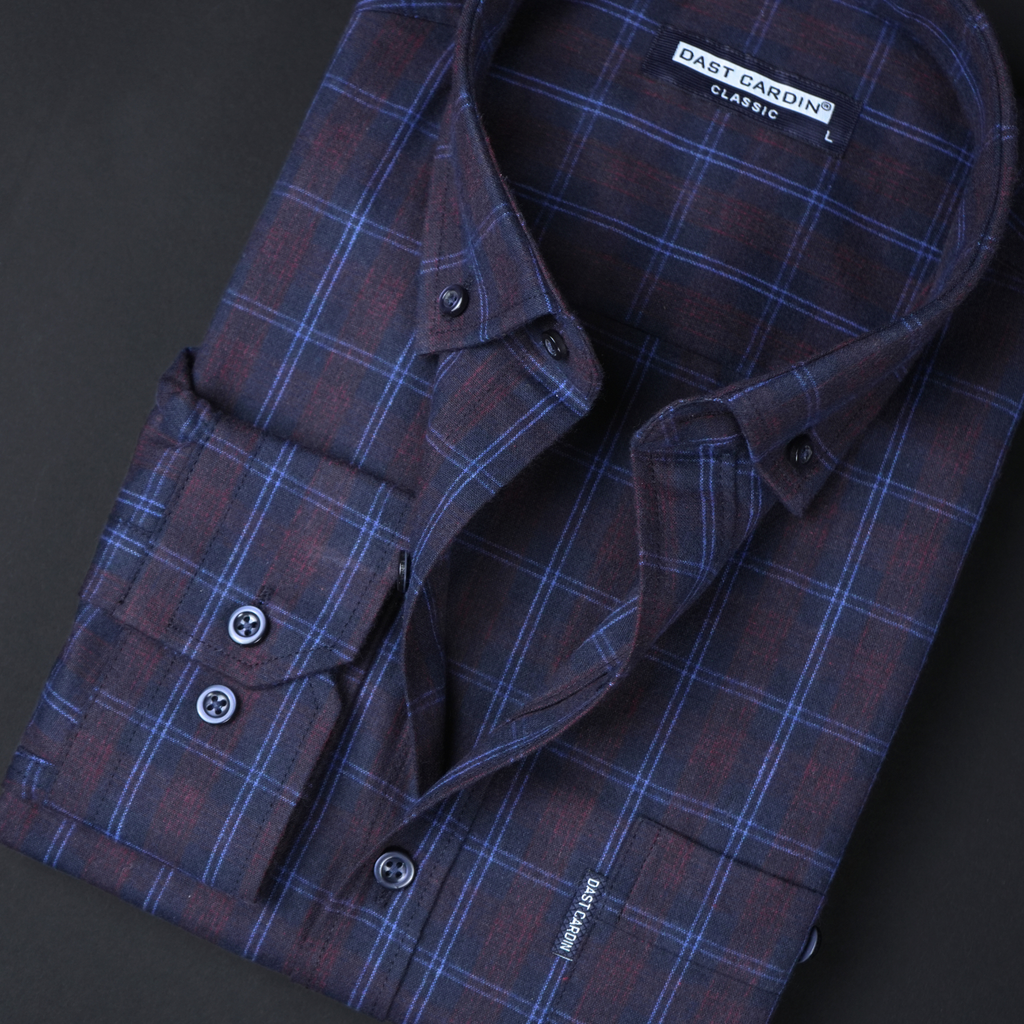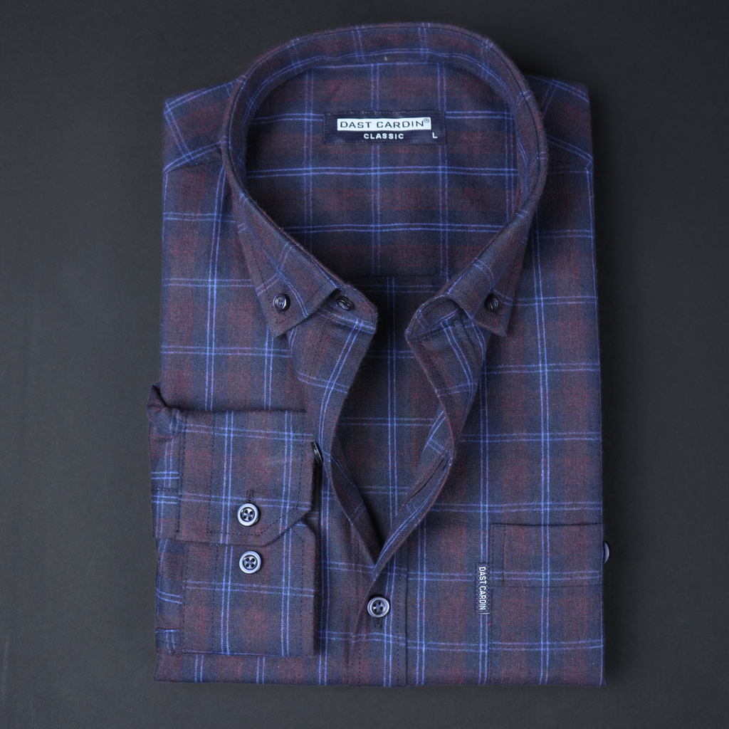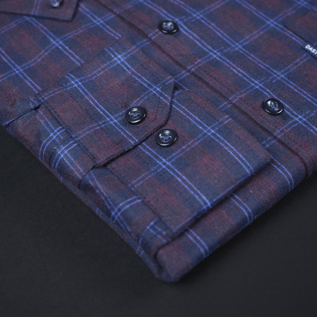 Cămașă groasă pentru bărbați - Narcis - Vișiniu cu bleumarin și negru