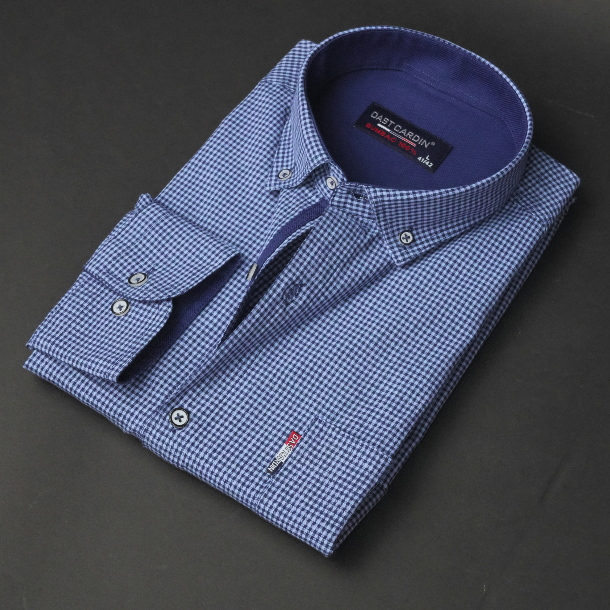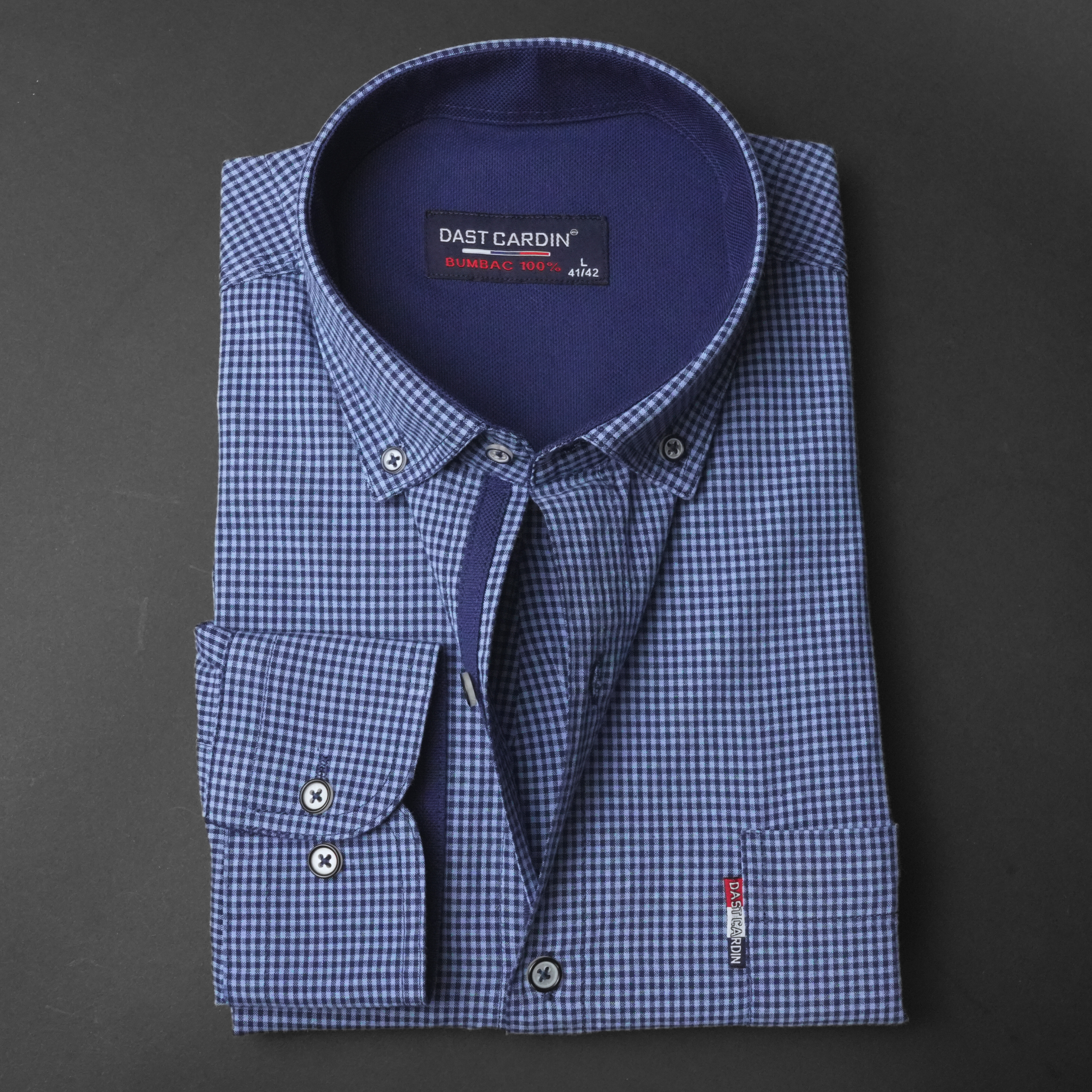 Nuanțele de roșu și bleumarin aduc un plus de vitalitate și dinamism, conferindu-vă un look proaspăt și atrăgător. Carourile mici adaugă un detaliu subtil, perfect pentru a completa outfit-ul dumneavoastră casual.