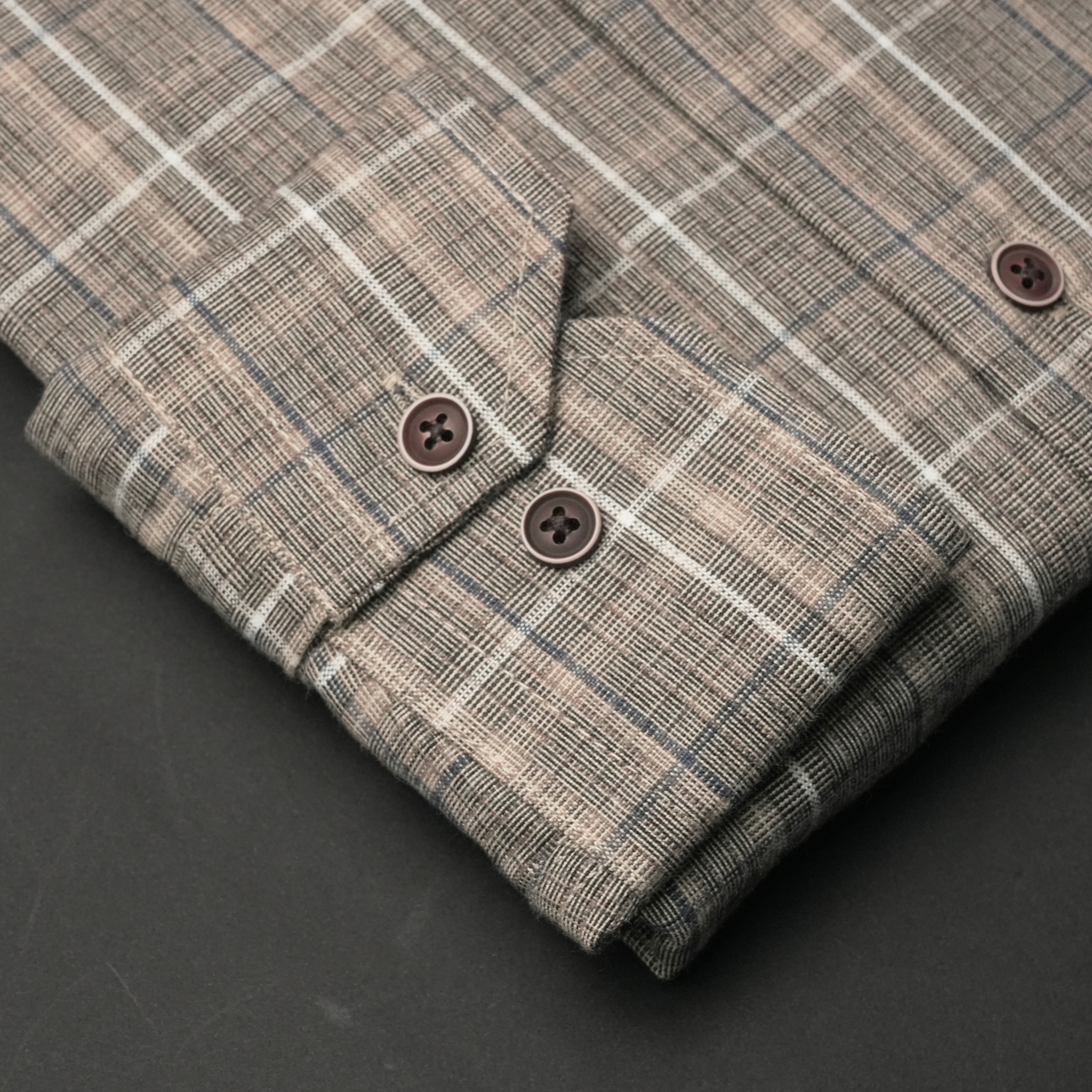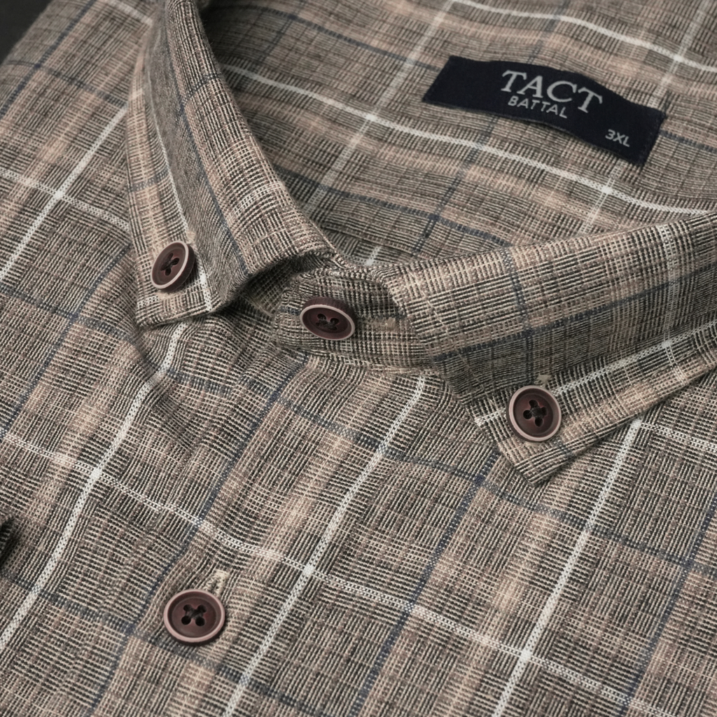 Gulerul întărit și acompaniat de doi nasturi, își va păstra forma,  fără a fi nevoie de o călcare riguroasă,  cusăturile de 7 pași pe cm, butonierele cusute impecabil și  nasturii atent aleși.