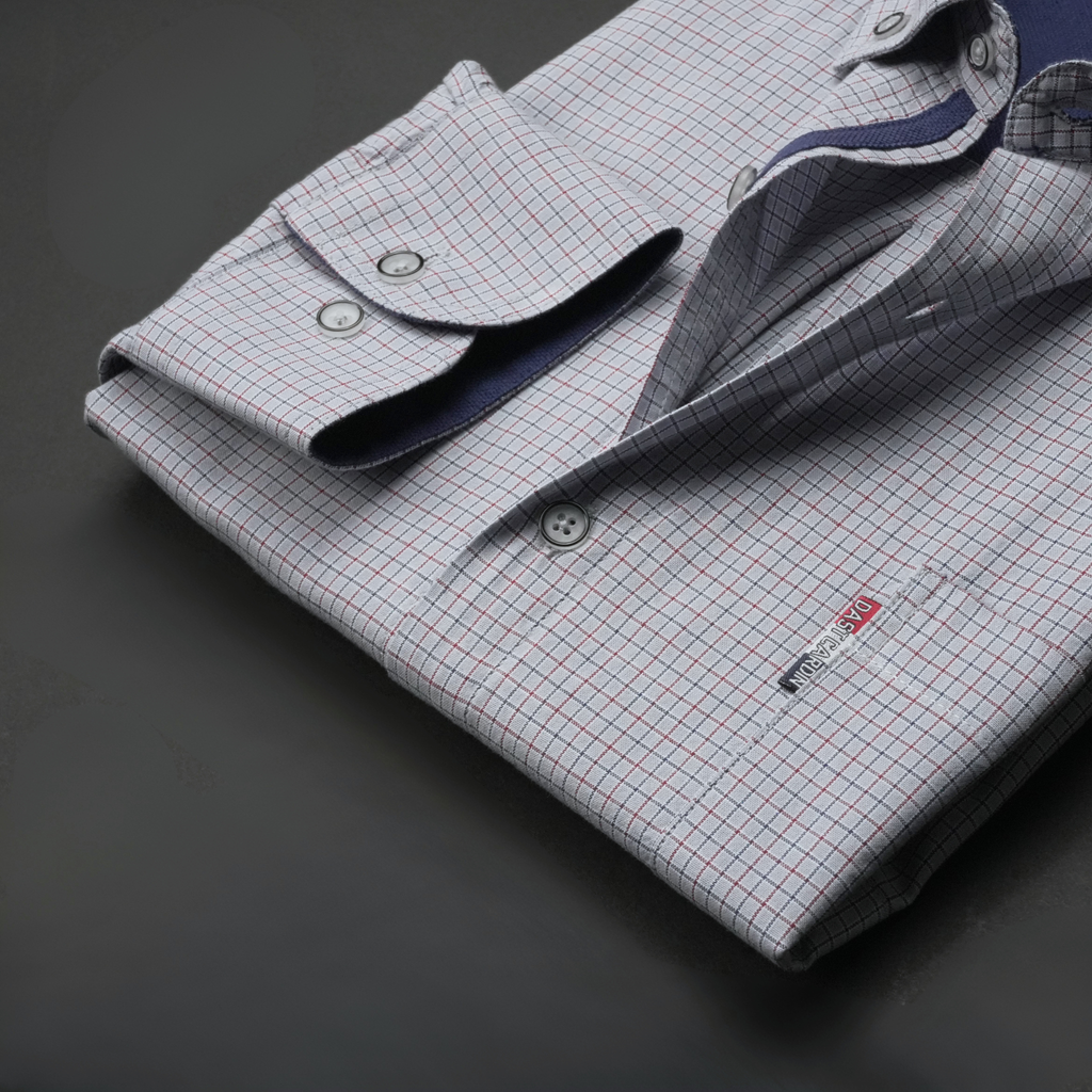 Cămașă pentru bărbați - Buftea - Gri cu albastru și roșu