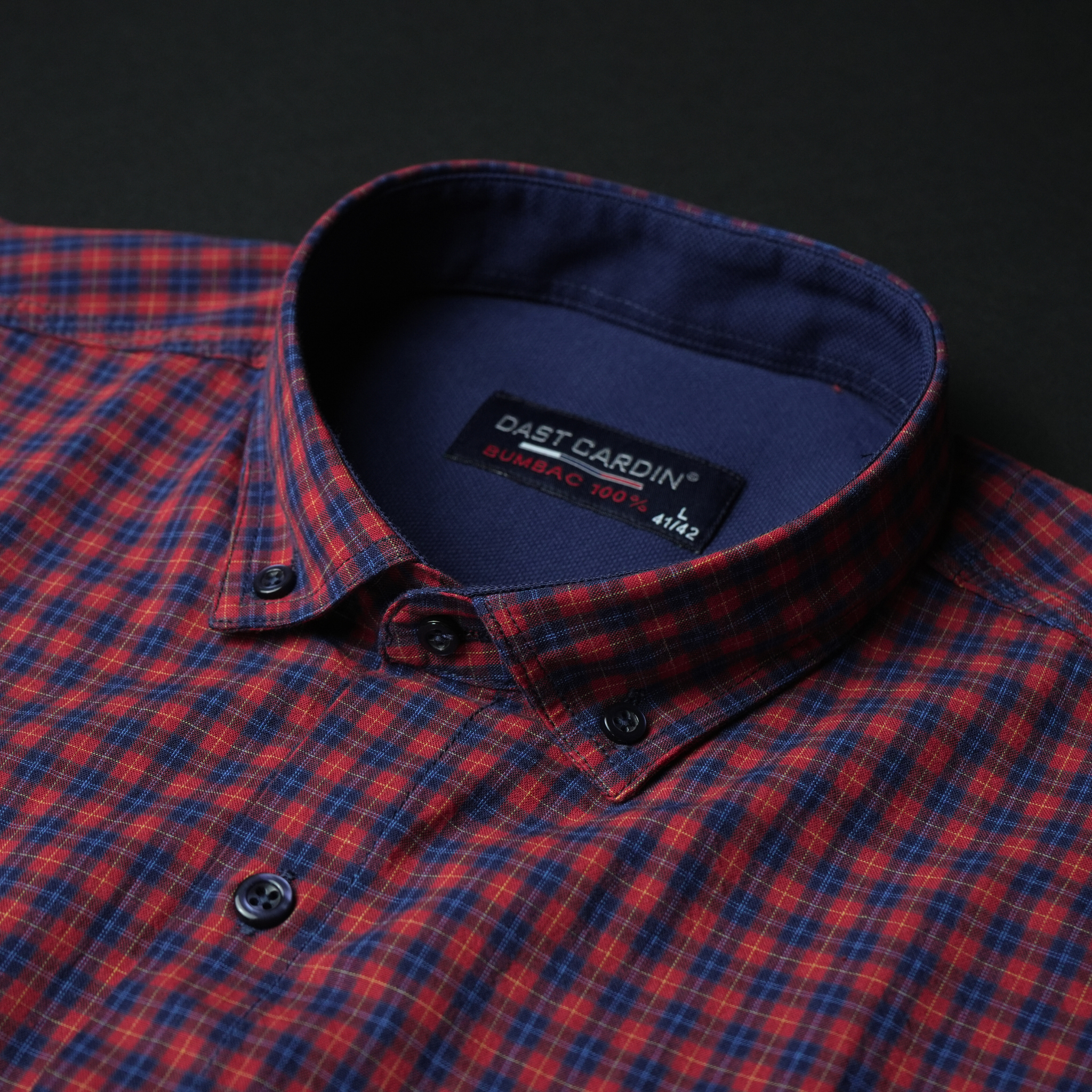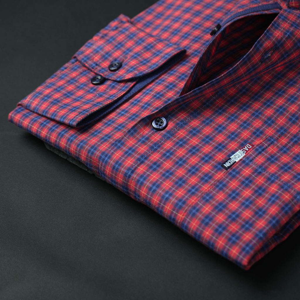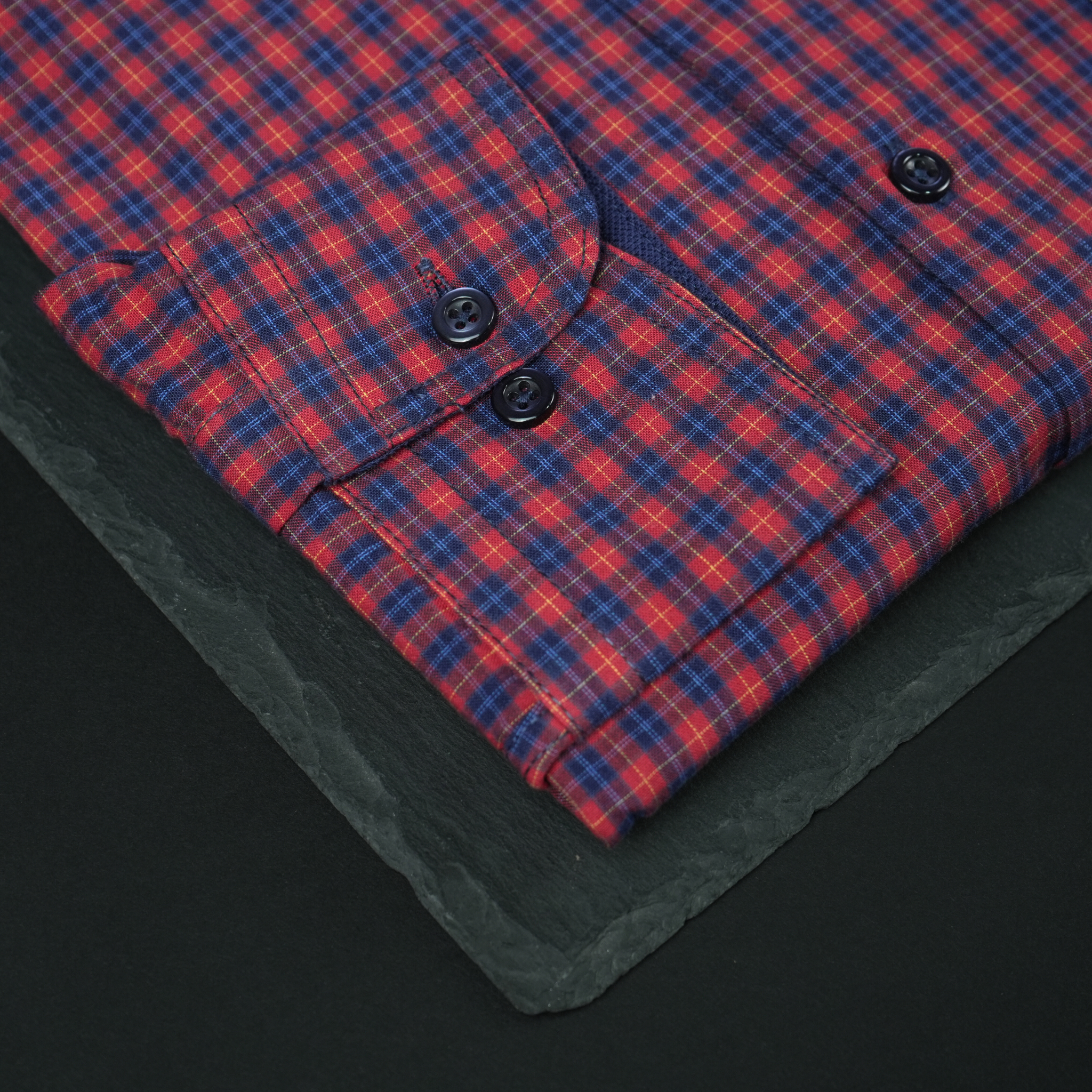 Cămașă pentru bărbați - Ulpius - Roșu cu bleumarin și galben