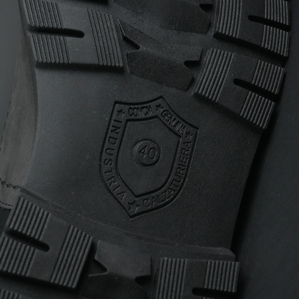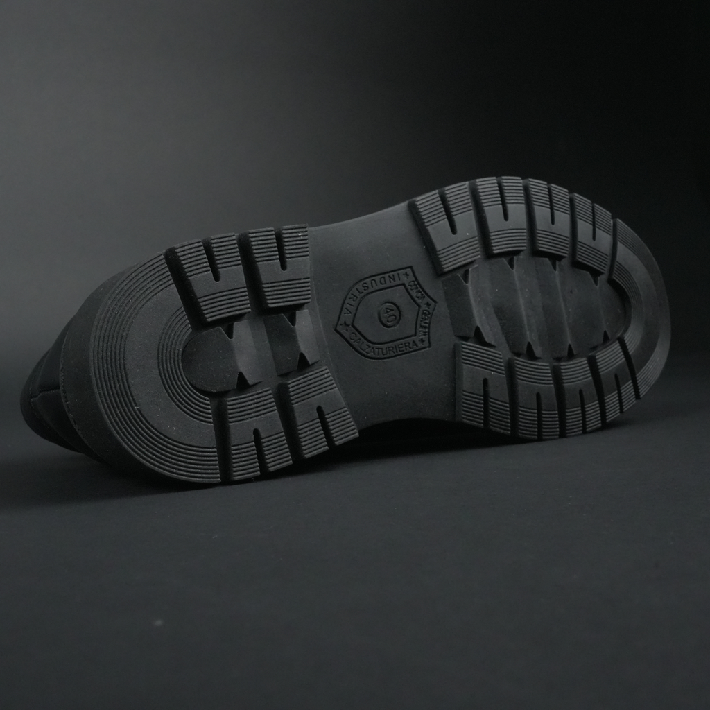 Talpă groasă, turnată din cauciuc dens, cu profil adânc. Aderență beton pe asfalt ud, gheață subțire sau pietriș. Nu aluneci. Nu simți pietre. Nu bate frigul.