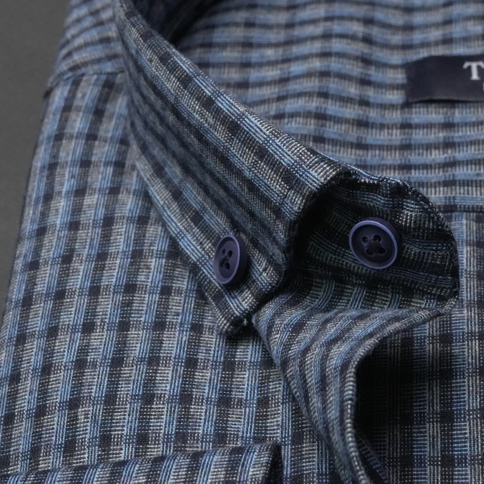 Gulerul întărit și acompaniat de doi nasturi, își va păstra forma,  fără a fi nevoie de o călcare riguroasă,  cusăturile de 7 pași pe cm, butonierele cusute impecabil și  nasturii atent aleși.