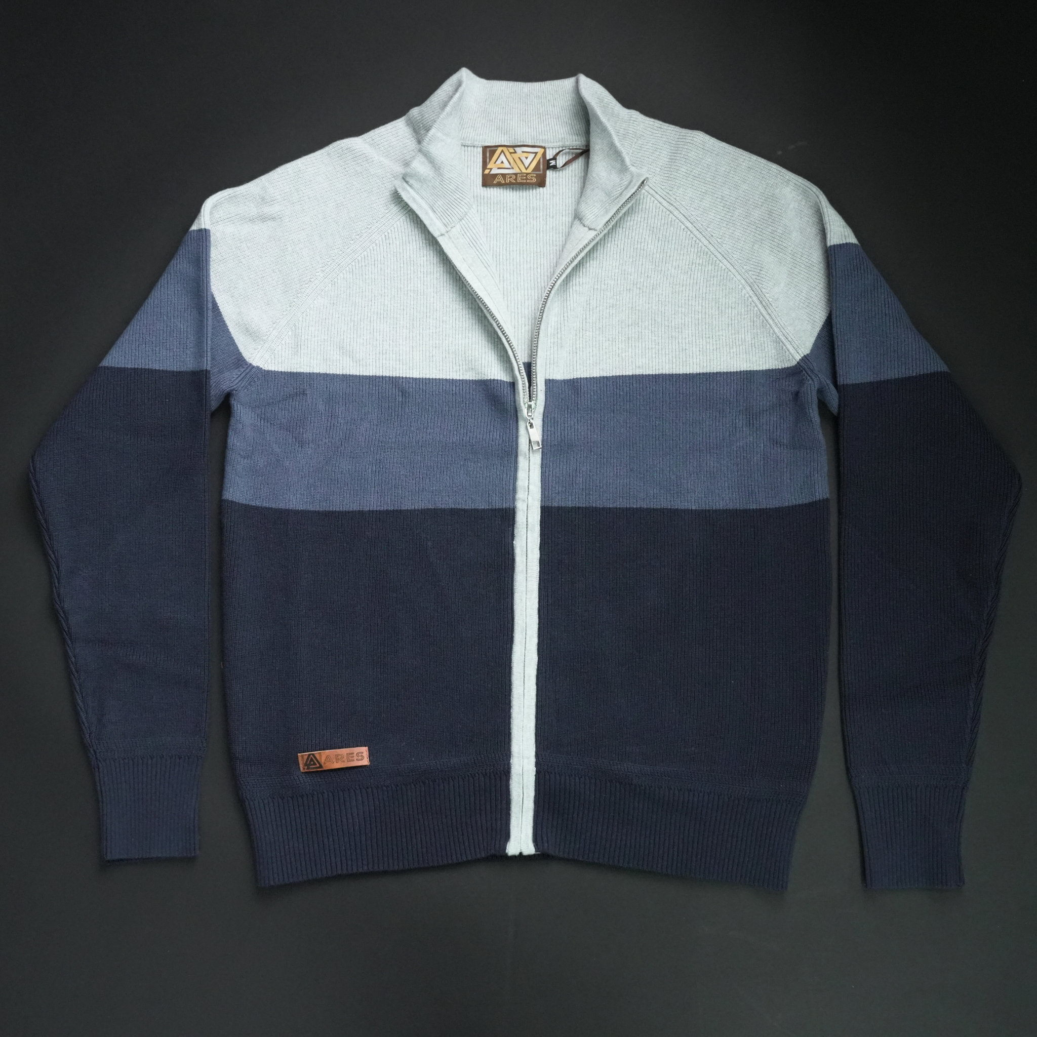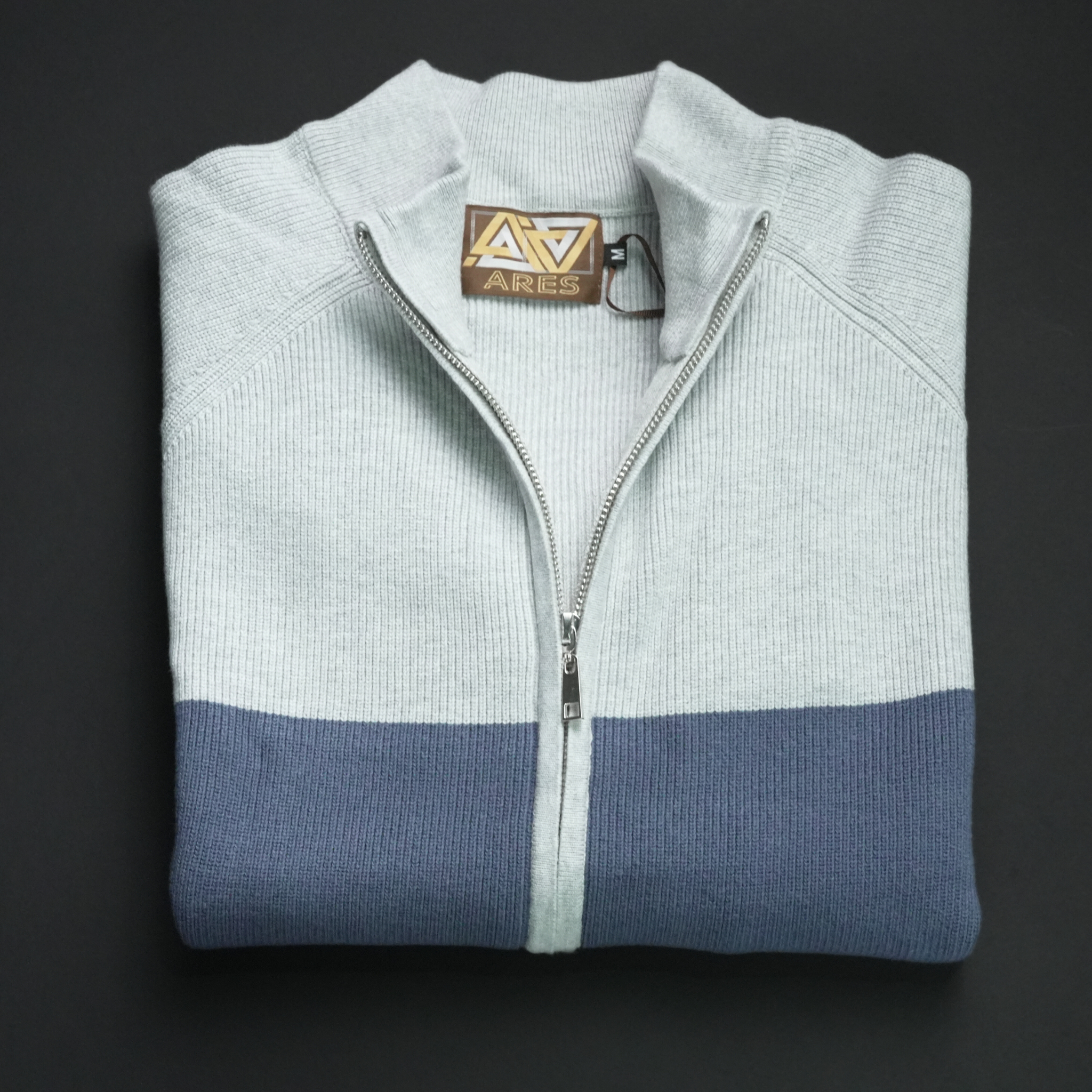 Pulover cu fermoar Ares - ATLAS - Gri cu albastru și bleumarin